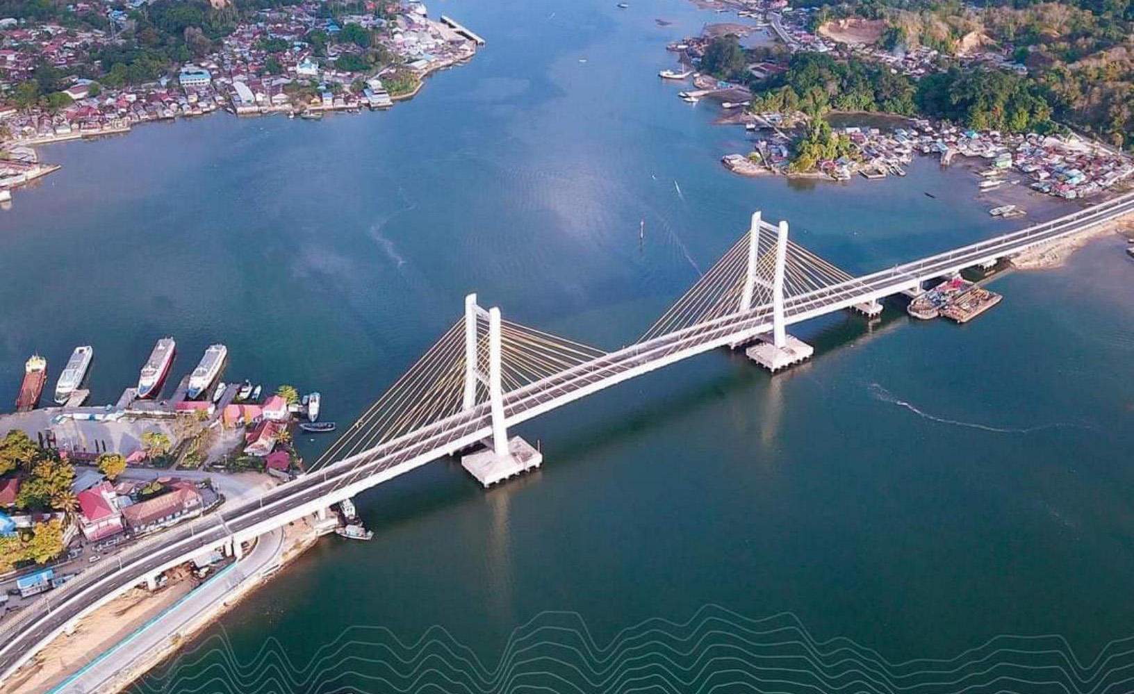 肯達(dá)里斜拉橋位于印尼蘇拉威西省,橋梁全長(zhǎng)474.08m,主跨388m,雙塔高約78.35m,預(yù)應(yīng)力混凝土橋面寬25m,采用雙向雙車道公路和兩條人行道。